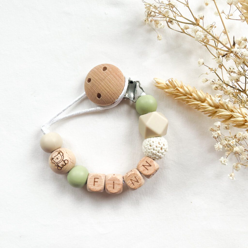 Von personalisierten Schnullerketten und Schlüsselanhängern mit Namen über Haarschmuck für Mama und Kind bis hin zu sicheren Greiflingen und stilvollen Accessoires fürs Kinderzimmer – jedes Stück wird individuell gefertigt.